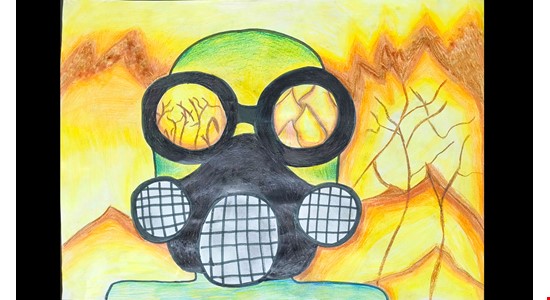 Com a ideia de que estamos tentando respirar em meio a tanto fogo, Manuela retratou com papel e lápis de cor as chamas das queimadas como reflexo do que o homem tem feito com a natureza. Chega de queimadas!