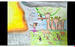 Tendo como base a música Aquarela, de Vinícius de Moraes e Toquinho, Miguel desenhou numa folha qualquer o que ele entendeu dessa canção. Lápis de cor e um pingo de tinta guache ganharam vida na imaginação dessa criança.