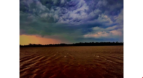 Passamos por um chuva durante a navegação, quando ela amenizou, me dirigi a popa do barco e me deparei com esse cenário. O sol tentando voltar a brilhar após as nuvens carregadas da chuva.