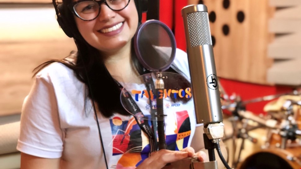 Gravei as duas vozes separadamente pelo celular, sem microfone, e depois as uni ao playback instrumental.
